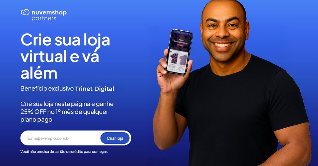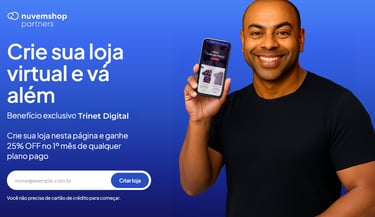 Lojas Virtuais - Benefício exclusivo Trinet Digital: Crie sua loja nesta página e ganhe 25% OFF no 1º mês de qualquer plano pago